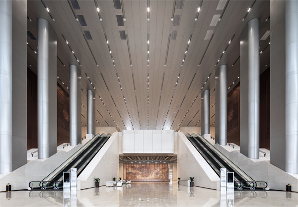 針對長沙國際會議中心的室內設計,港源設計(GYD)的辦公團隊遵循建筑精神的指引,結合高端政務商務屬性,將建筑內涵再細化及升華,運用傳統、現代、國際化的思考,兼顧湖湘文化的深厚積淀,將長沙國際會議中心呈現出既能代表大國形象,又兼具地方特色的國家級會議中心。