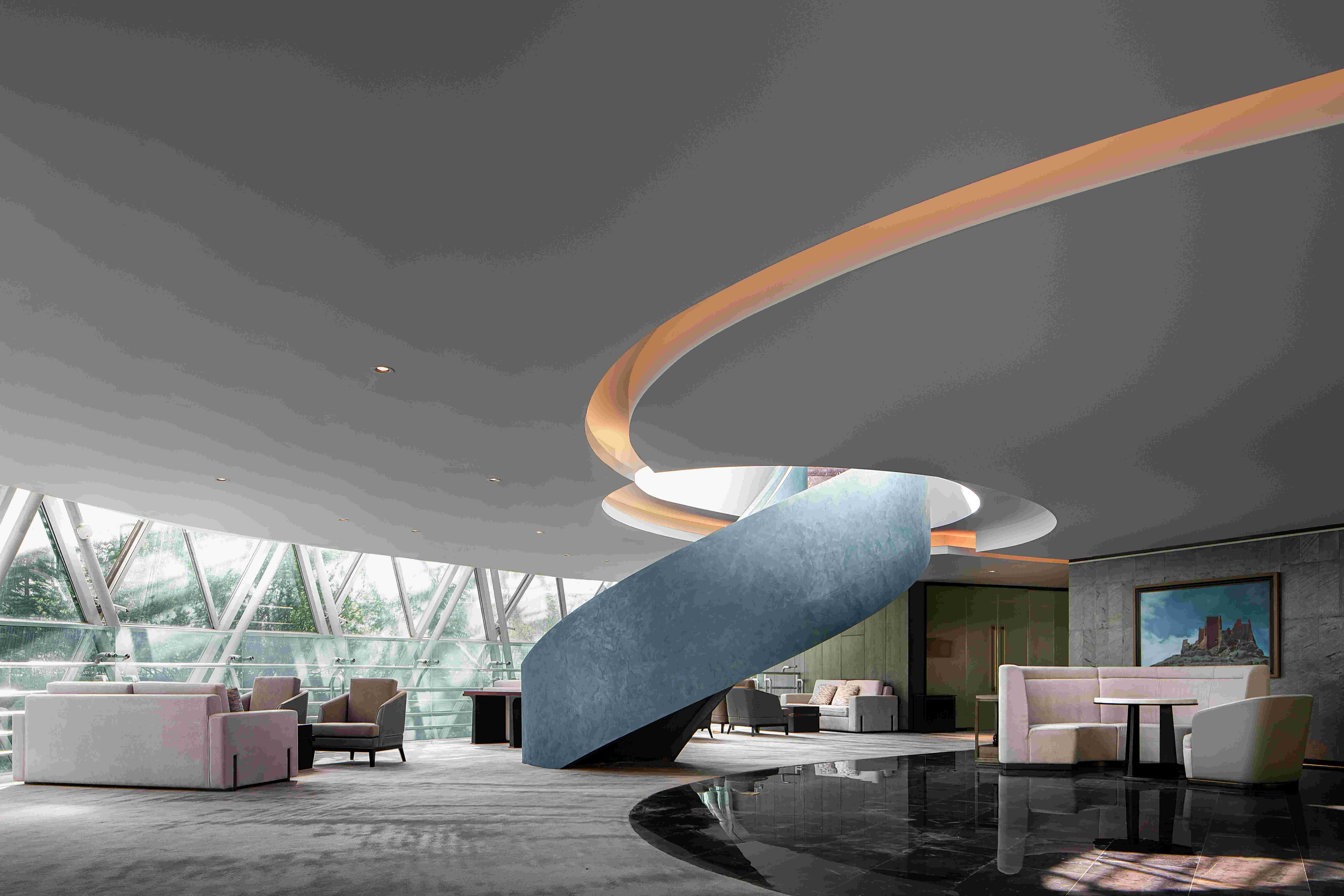 ▲ Check in 等候區及通往行政酒廊旋轉樓梯