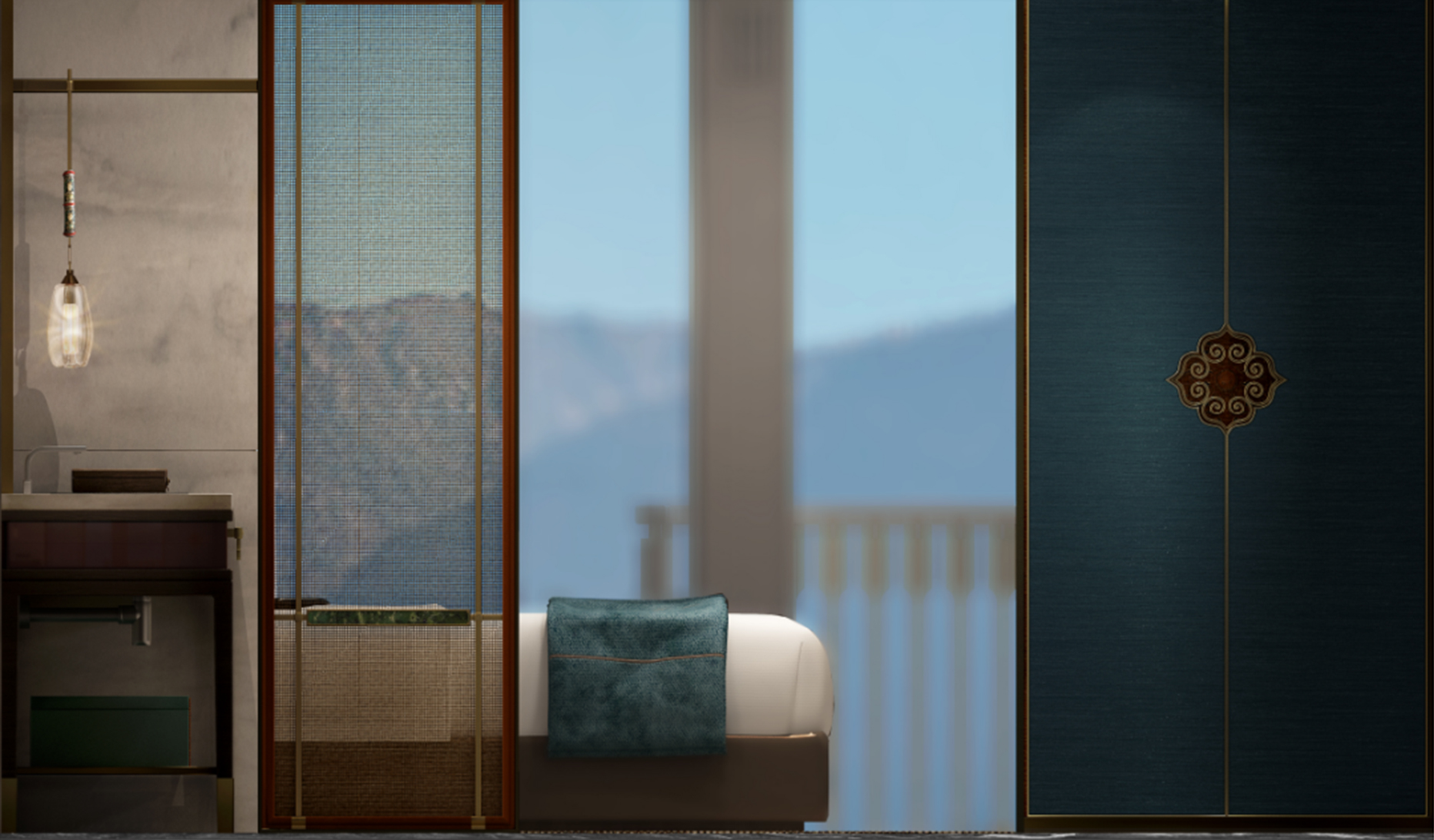 作為酒店改造項目,業主希望以極低的造價控制去保留酒店的歷史風貌同時符合當下的審美,GYD綜合各方面因素,保留藏族色彩印象,對地域元素進行提煉并精細刻畫,立面材料上出于成本控制及震區的考慮,創新的采用了具有的天然質感的薄石材板以及藏式邊瑪墻做法去刻畫一個具有藏式文化氣質的氛圍。