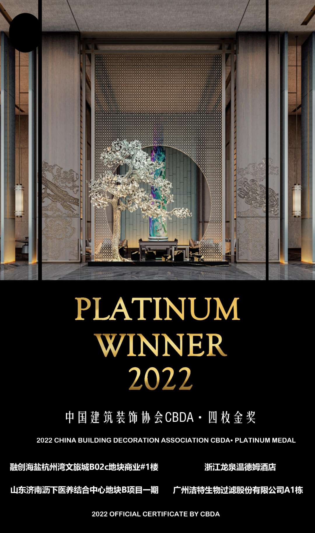 2022年10月,公司更名之際再迎來喜訊,江河設計(JHD)榮獲中國裝飾設計獎2021-2022年度四項金獎。本次江河設計憑借優秀的設計理念、創新的設計實踐及卓越的設計成果榮登榜單。