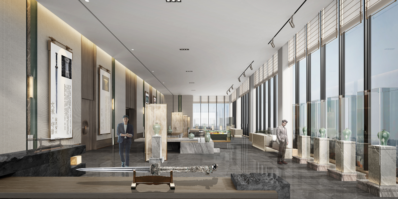 該項目位于浙江龍泉市,龍泉市以青瓷文化、寶劍文化、香菇文化聞名于世,是中國陶瓷文化歷史名城和浙江省歷史文化名城,也是著名的“海上絲綢之路”的起點。本次酒店設計汲取本地文化元素,將“青瓷”“寶劍”等元素融入室內設計中。