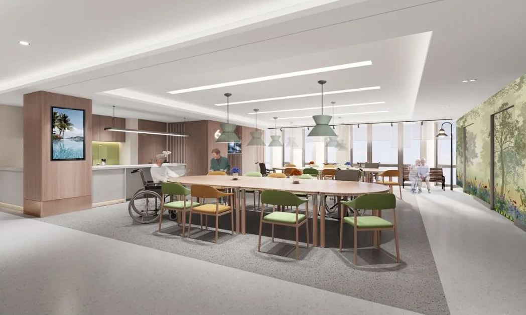 We used the landscape element as the foreshadowing of the whole space, with the Chinese toon tree and hibiscus flower as the core elements throughout the design. The Chinese toon tree mainly means health and longevity, hibiscus flower mainly refers to gorgeous bloom, gentle persistence, it represents prosperity, a symbol of nostalgia, heavy friendship, the overall expression of the elderly physical level and spiritual level.