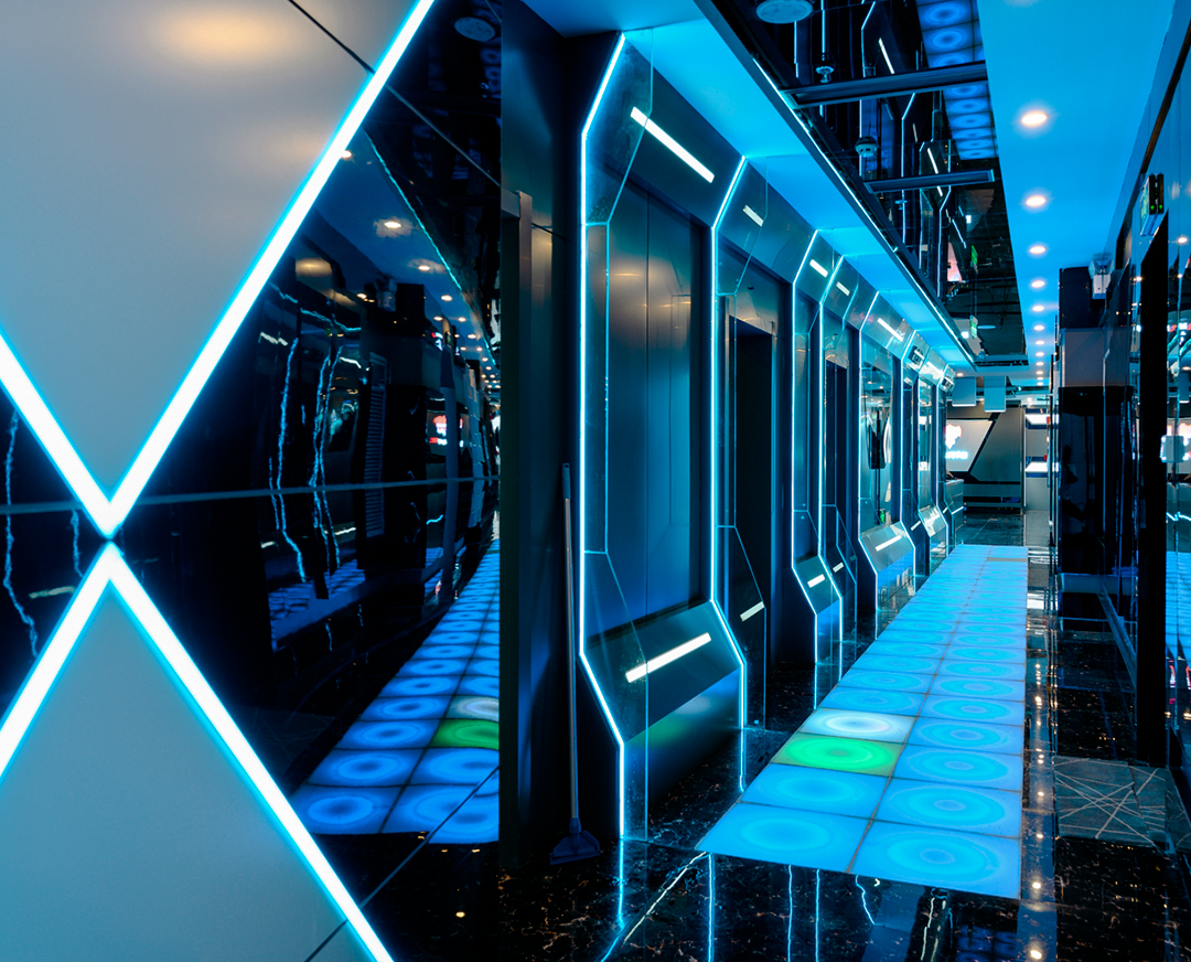 運用流線型的空間布局和曲線設計,營造出流動感和動態感。活潑的色彩和燈光效果,打造出充滿活力和激情的氛圍。著眼于不同的藝術展現樣式,呈現出新的感官體驗,彩色光線的視覺美。