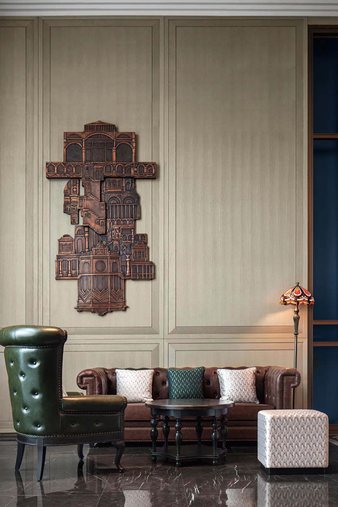 設計圍繞“重返民國”的主題,以簡潔明快的色調,將民國風華與現代元素結合,打造精致雅致的空間氛圍同時透露著淡淡的復古情懷。
