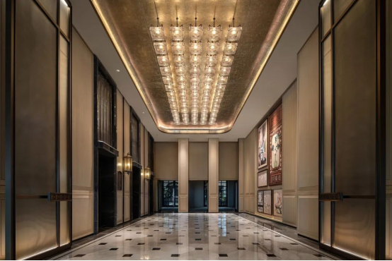 鐘樓做為民國時期市中心的一個重要地標,被運用到共享大堂的中心廣場位置,廣場的設計是民國時代的城市建設縮影,共享大堂做為施柏閣大觀酒店與皇冠酒店的大堂吧及全日餐使用,立面上使用軟磁材料,塑造民國風立面,打造民國街區,伴隨著悠悠的鐘聲將人民帶回那個激蕩而浪漫的年代。