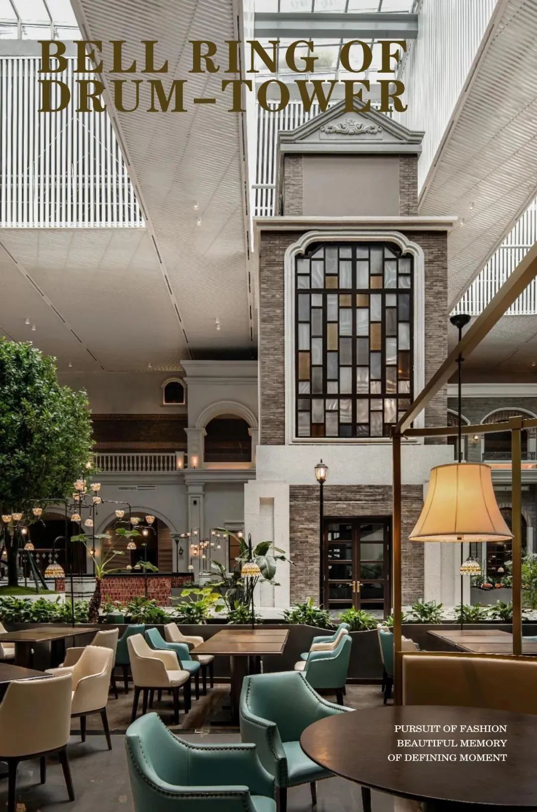 富有時代感彩色玻璃序列組成的三進院空間,這里的設計呼應中國傳統宅邸院落式布局的設計手法,層層遞進后那復古的時鐘又再一次提醒人們這里是“民國”。