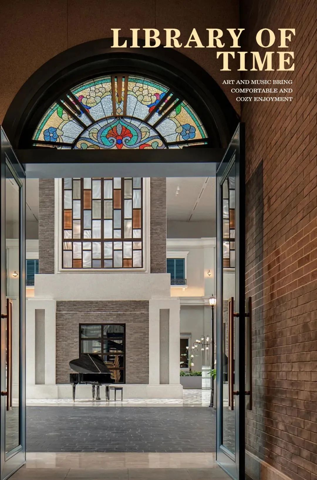進入藝術大堂,優雅的旋轉樓梯,精致的西式線條搭配棋盤式的石材鋪貼,優美的穹頂下,復古而不失時尚的藝術吊燈,周圍環繞著是極具序列感的拱窗,每一個元素的運用都透露著深深的時代烙印。