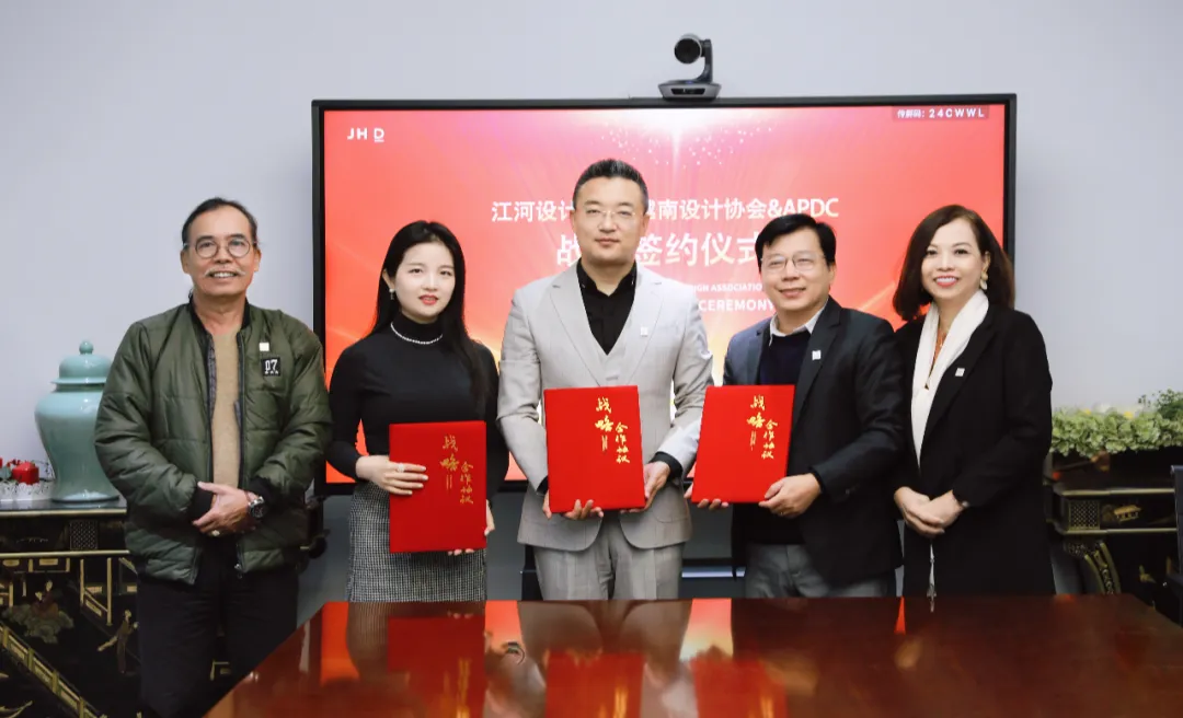在隨后的會談中,江河設計JHD、越南設計協會(VDAS DELEGATION)、APDC亞太設計中心就設計領域的合作進行了深入探討,并共同簽署了戰略合作框架協議。