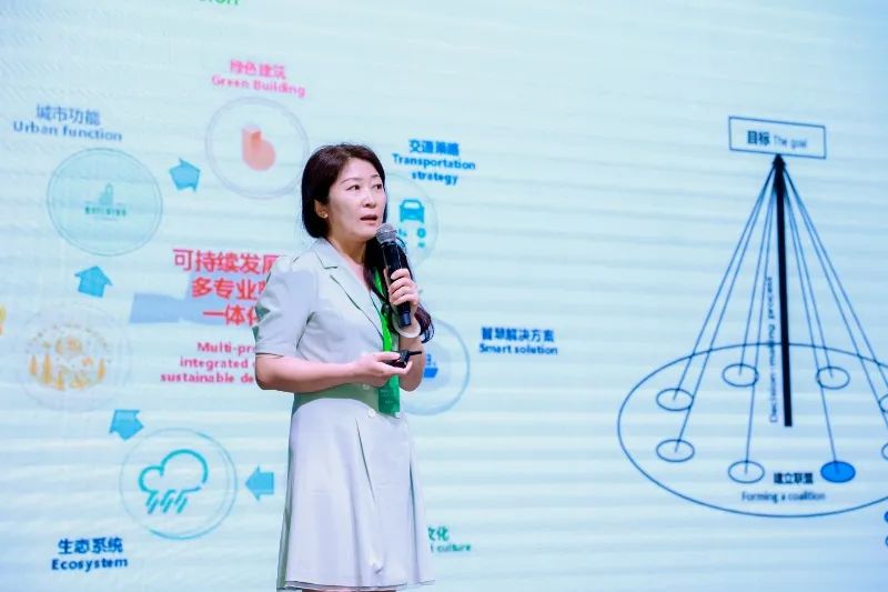 瑞典皇家理工學院城市與區域研究博士徐淼分享了“可持續發展與綠色健康—中外實踐項目”。通過德國博物館項目、遠景集團零碳產業園區項目、零排放居住方艙等項目的實踐探究,徐淼博士總結道,一方面,可持續發展需要建筑、室內、環境、交通等不同領域的專家共同參與,以確保項目能夠全面地滿足當前和未來的需求;另一方面,建筑設計和室內設計需要緊密結合,以確保空間的功能性和美觀性,這種跨專業的合作可以更好地實現項目的整體目標,創造出既實用又美觀的空間。
