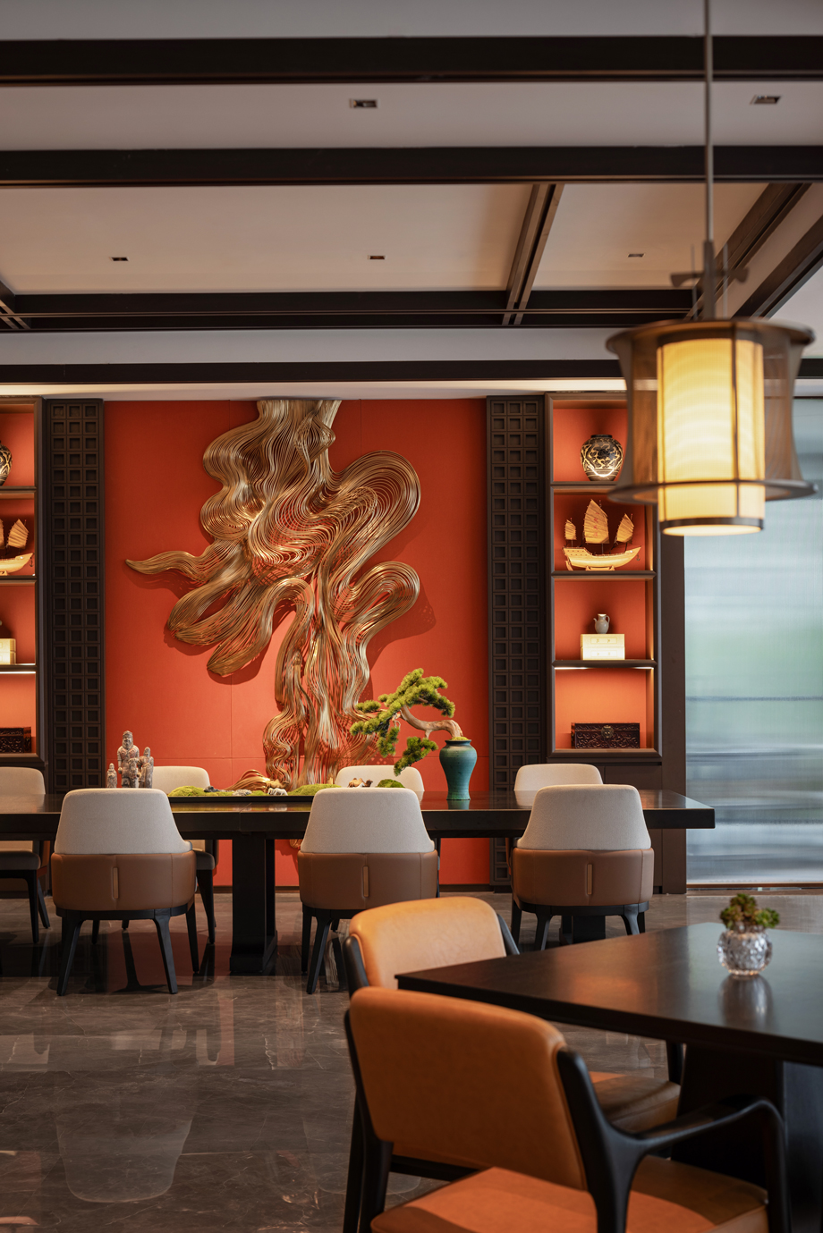JHD integrates the famous Shanxi guild hall architectural ornaments into the architectural space by taking architecture and wooden lacquerware as elements, in hope for paying tribute to the guild hall culture.