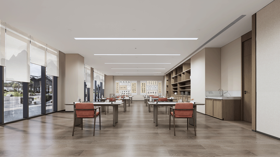 接待、洽談緊鄰入口大廳、以茶室的功能形式接待老人及家庭成員,前期作為洽談區,運營后,可作為老年人品茶、論茶的活動室。