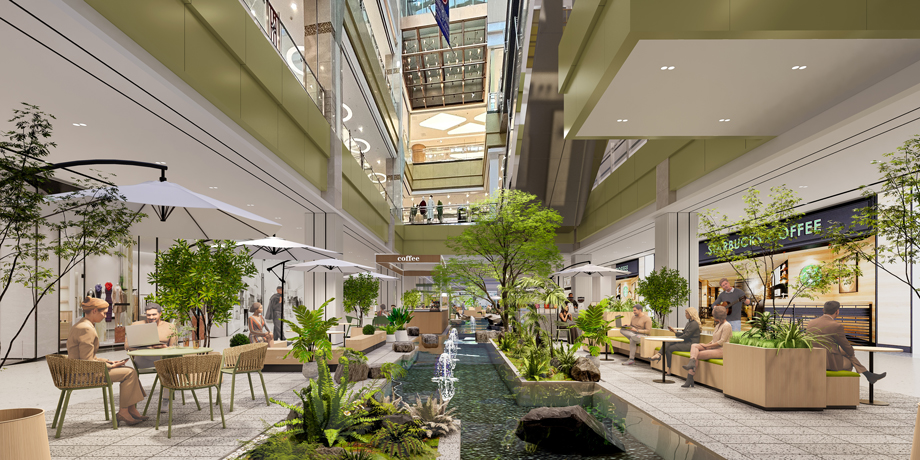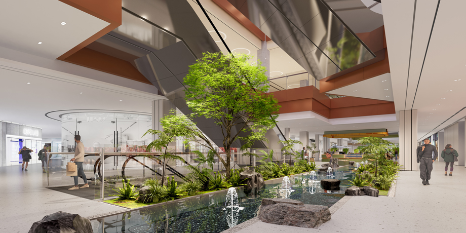 本次昆明世紀金源購物中心一層公區的精裝改造設計,融合了在地人文與自然生態元素,通過現代設計手法重述自然語言,打造出一個既現代又富有文化底蘊的購物環境。